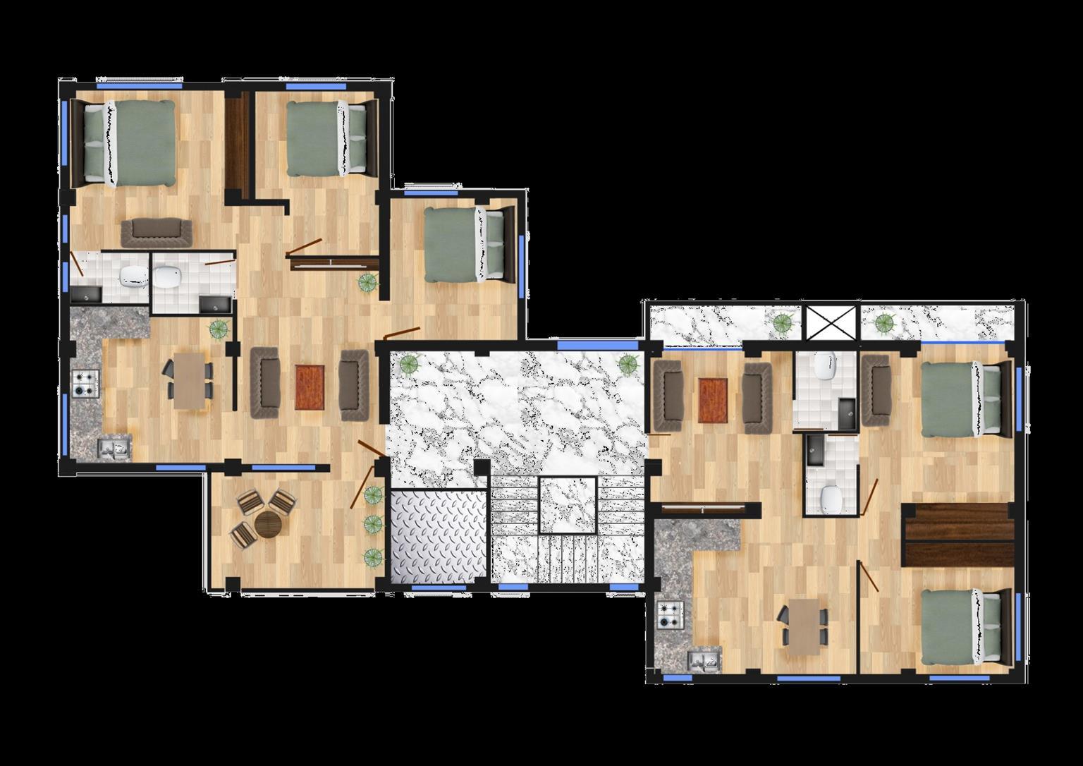 - Multipurpose gathering areas and recreational zones woven throughout clusters.