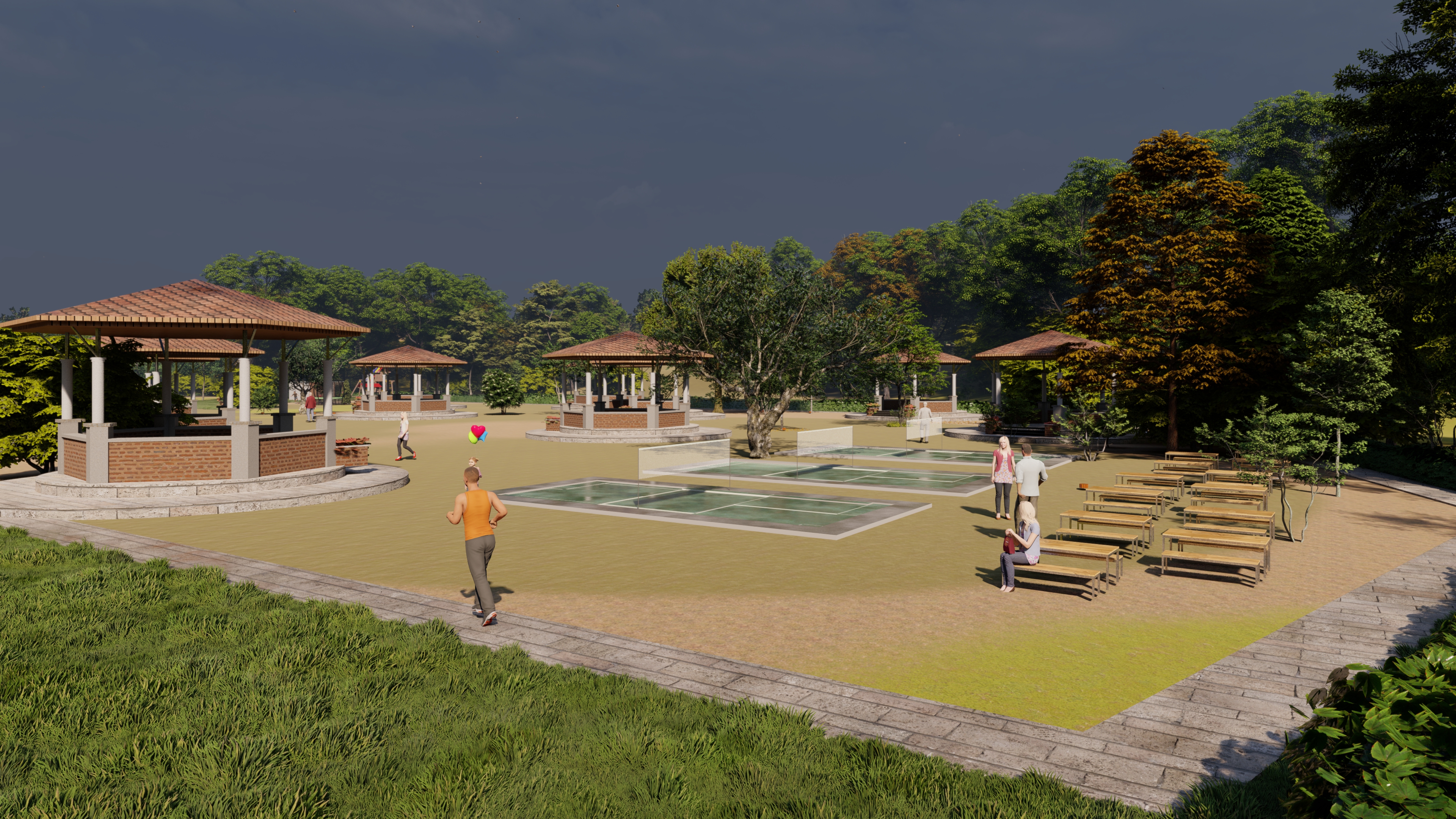 This project involves the conceptual landscape and architectural design of a recreational picnic park located in Bhaktapur. Designed to serve as a serene leisure destination for families and visitors, the site features well-planned pathways, circular gazebos, floral landscaping, and various activity zones. Key elements include open seating areas, badminton courts, shaded rest pavilions, and picnic benches, all thoughtfully arranged to encourage social interaction and outdoor enjoyment. Surrounded by lush greenery and set within a naturally contoured terrain, the project emphasizes accessibility, comfort, and harmony with nature, promoting domestic tourism and community engagement.