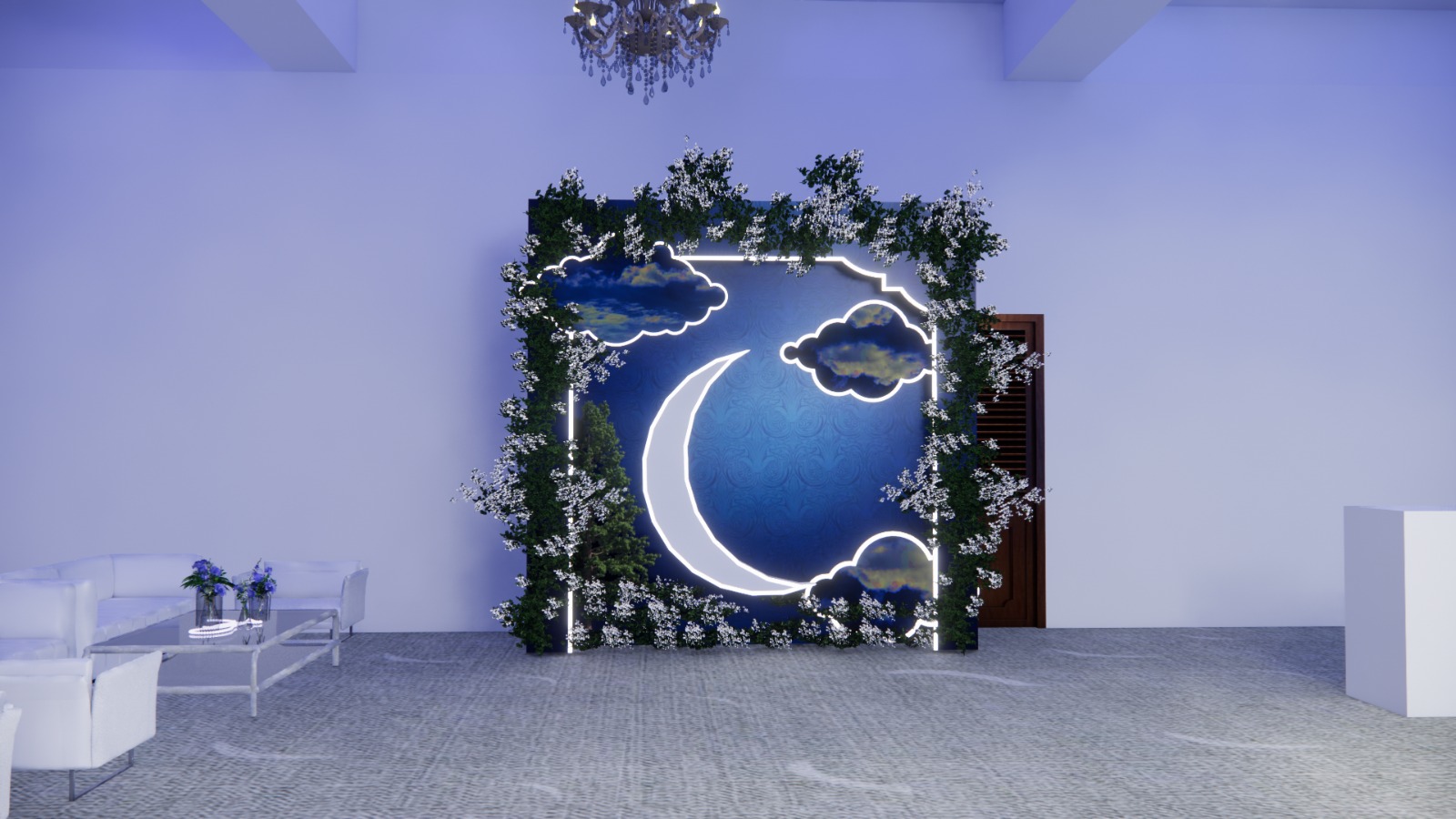The space was reimagined as a celestial dreamscape using a dark, layered palette and a carefully mapped lighting scheme. Walls, ceiling, and lighting elements were treated as active participants in the storytelling — not merely surfaces or fixtures, but mediums of emotion and depth.