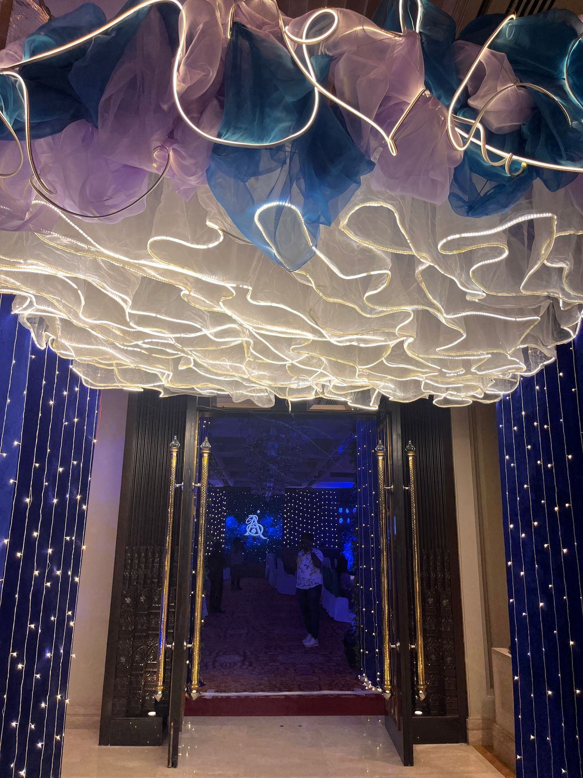 The overall experience blurred the lines between built form and atmospheric design. As guests entered, they were enveloped in a twilight-like ambiance — with soft darkness, glimmering lights, and rhythmic fabric movement working in harmony to evoke awe, emotion, and celebration.